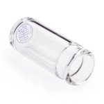 This glass medicine bottle slide provides a crisp, bright tone, featuring a closed, weighted end for balance, heavy wall thickness, and a medium diameter.